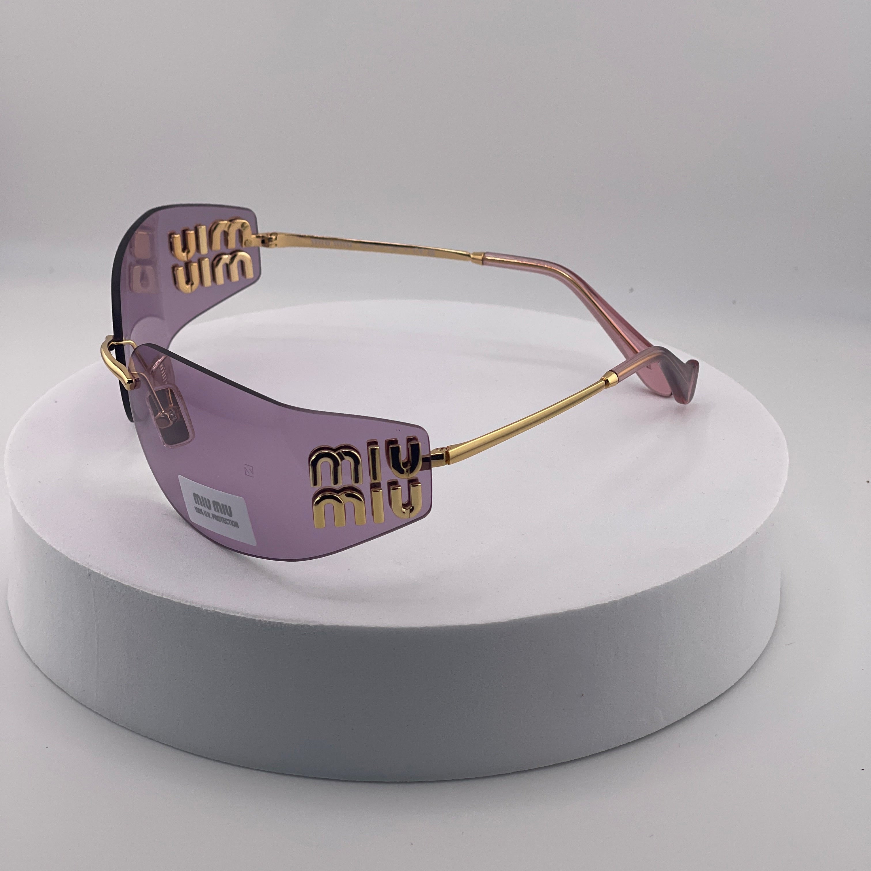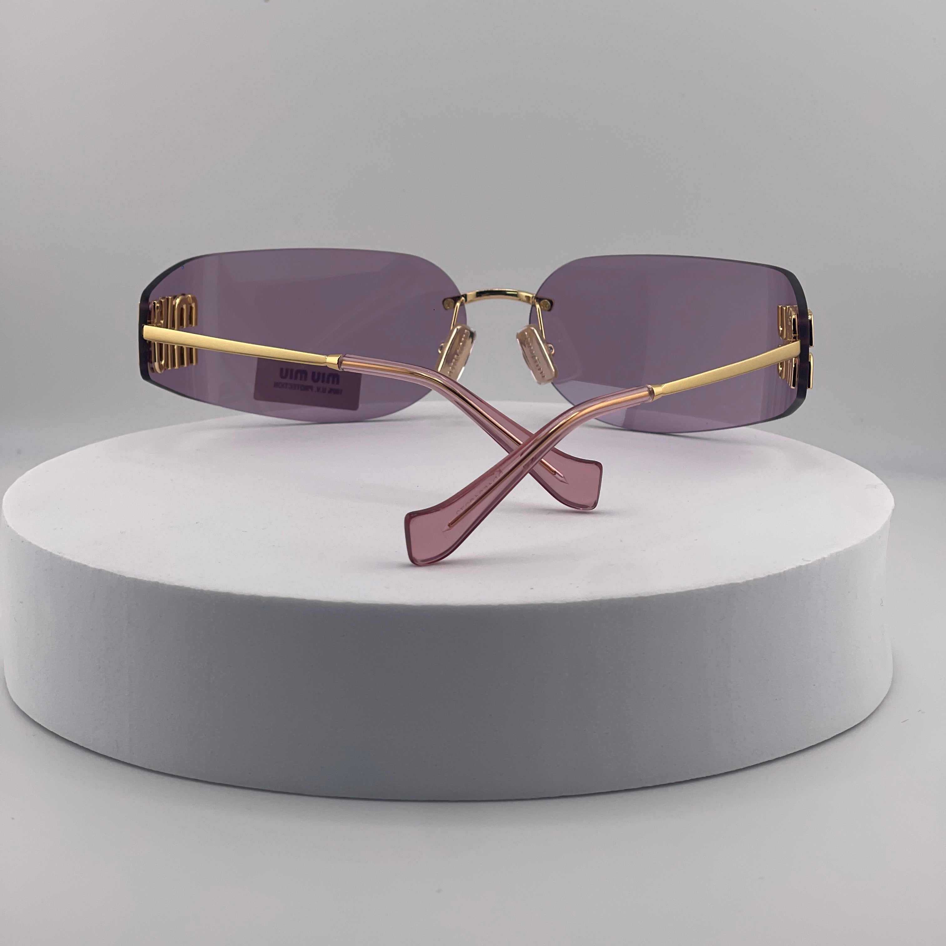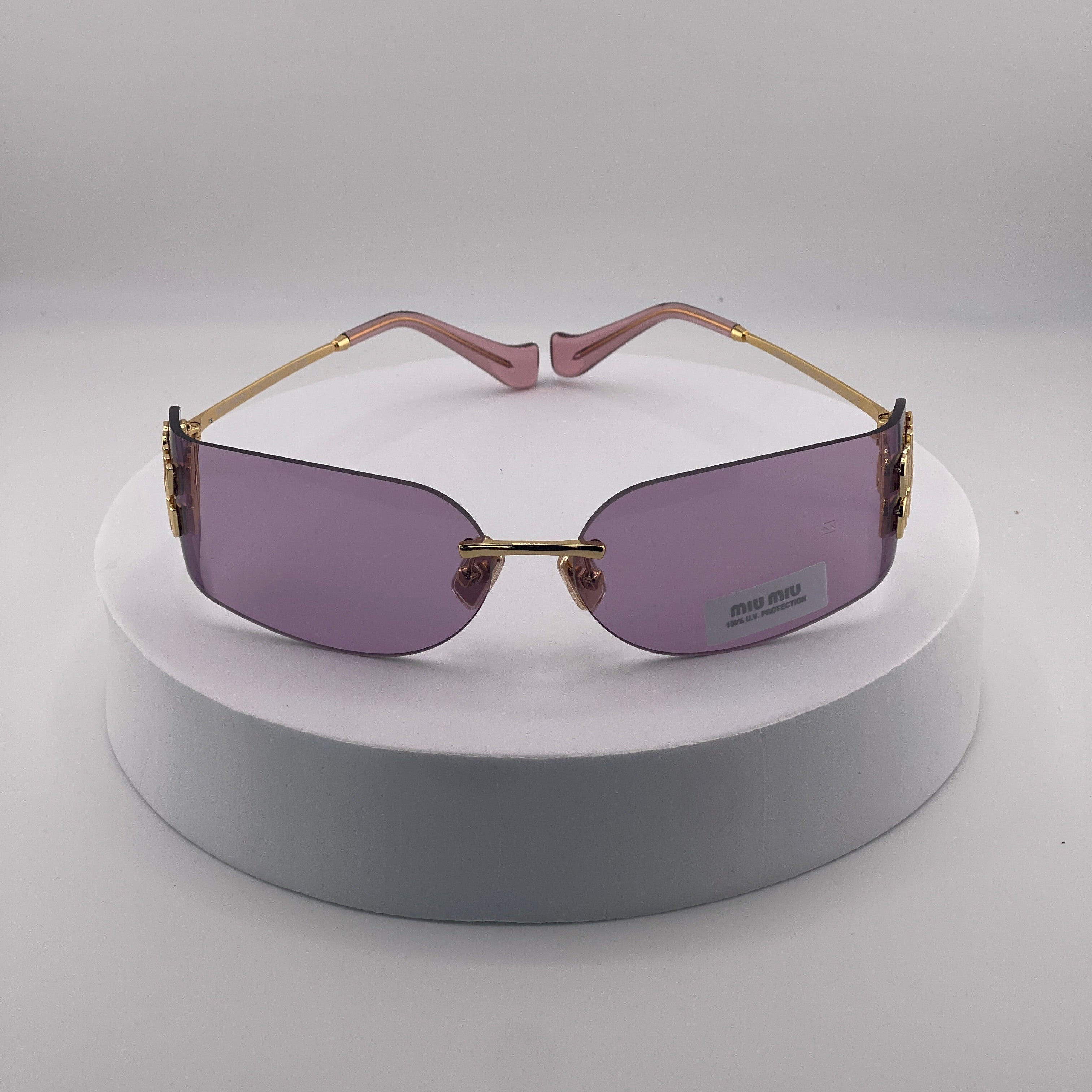 Miu Miu MU 54YS Rimless Sunglasses – Gold Frame / Purple Gradient Lens